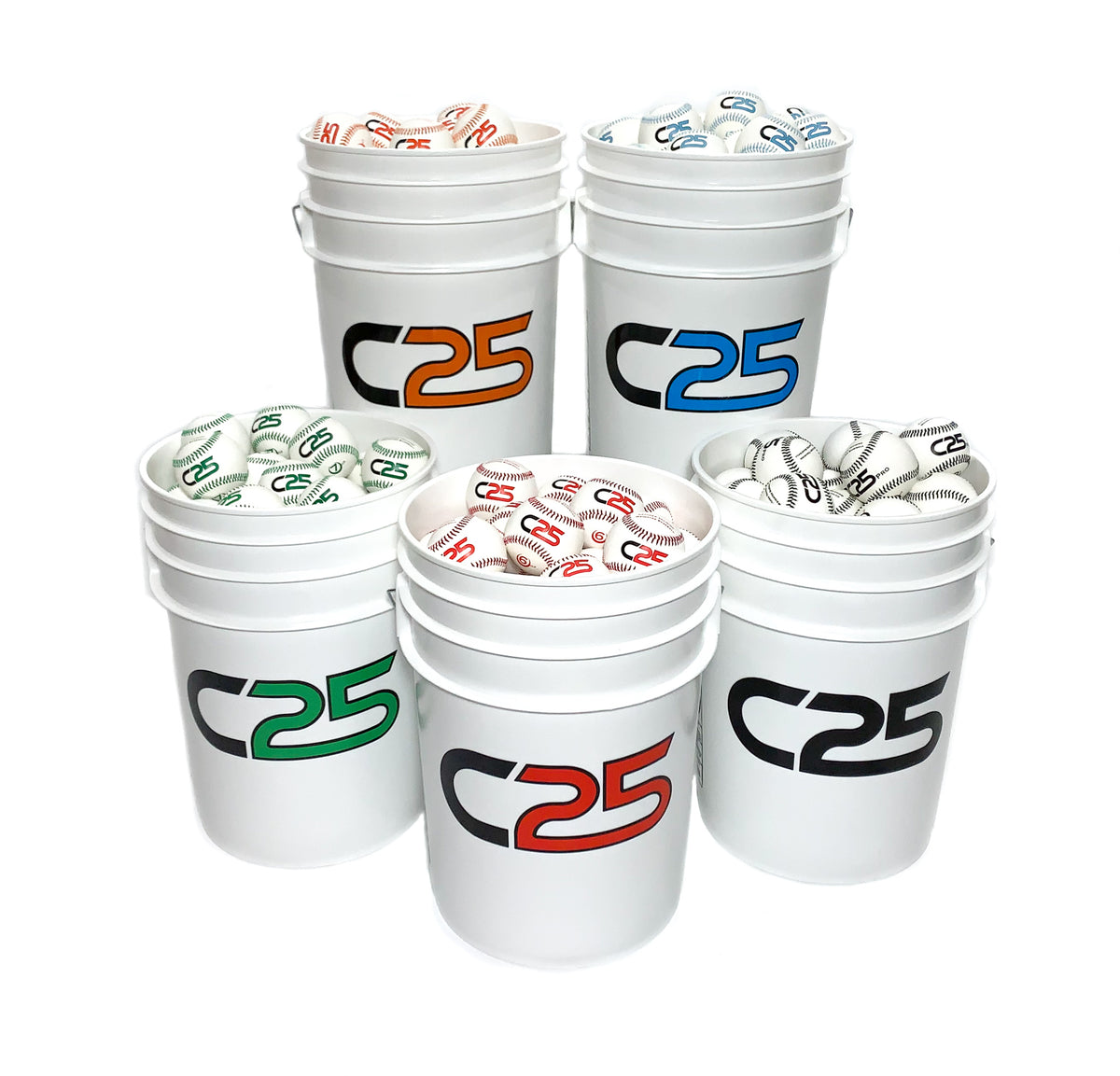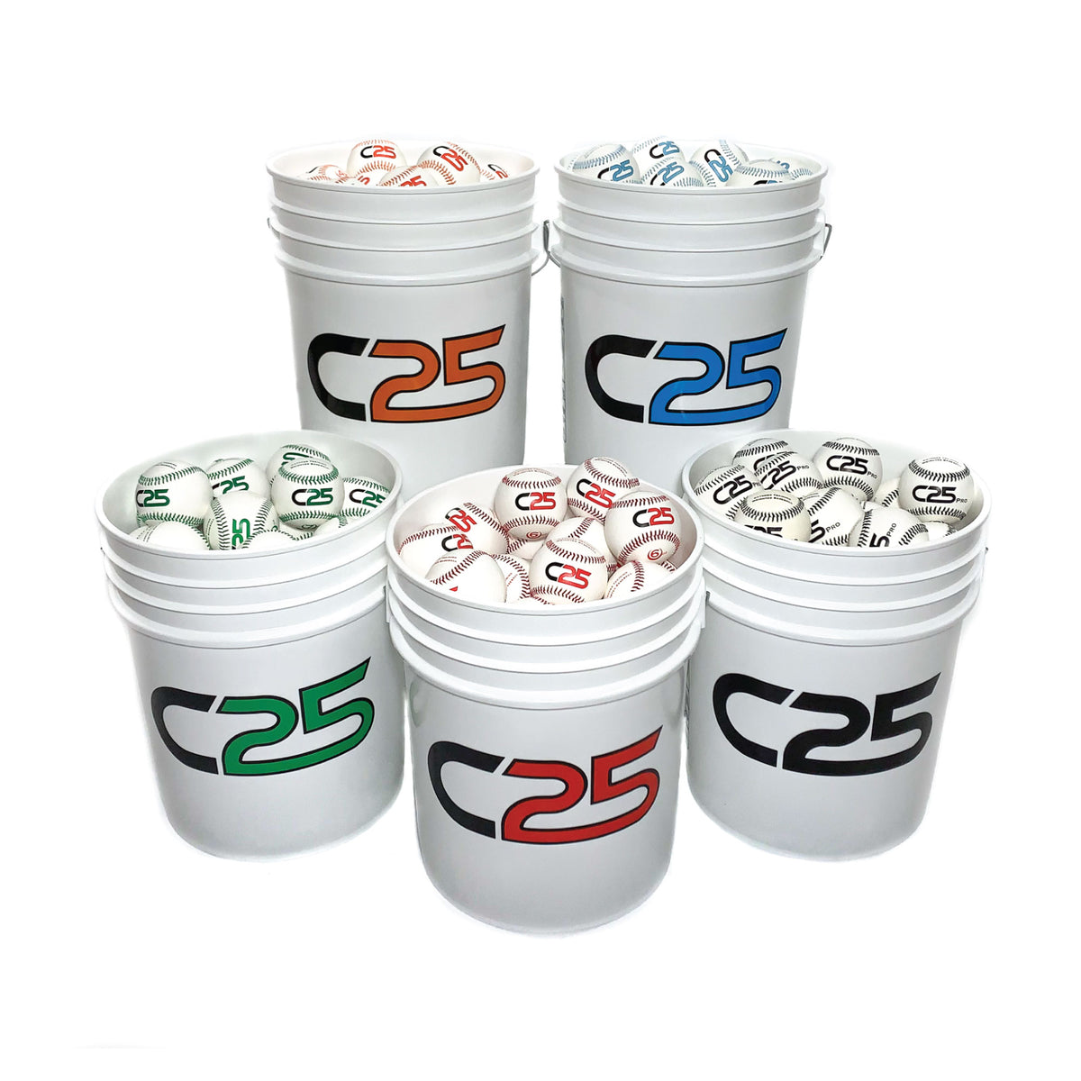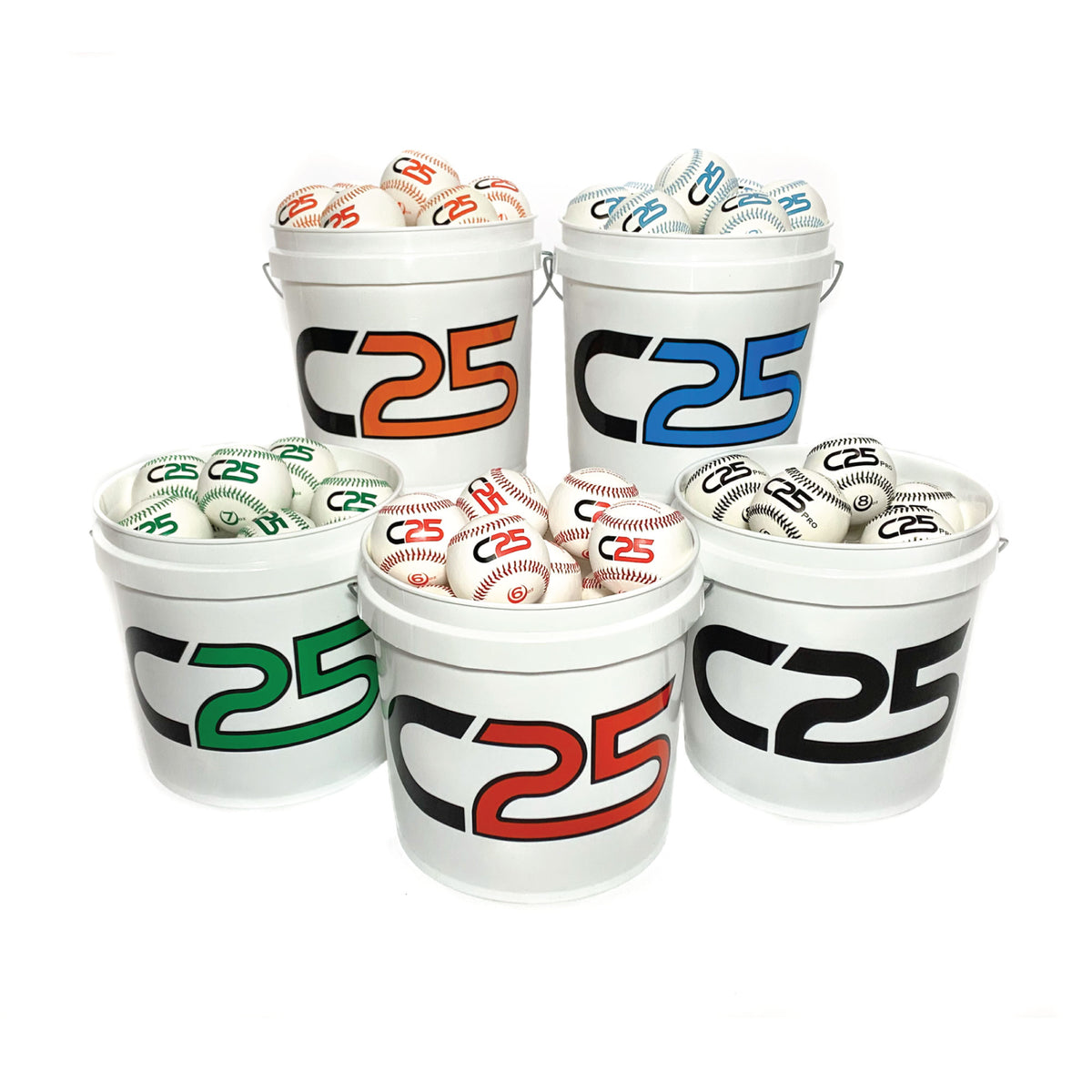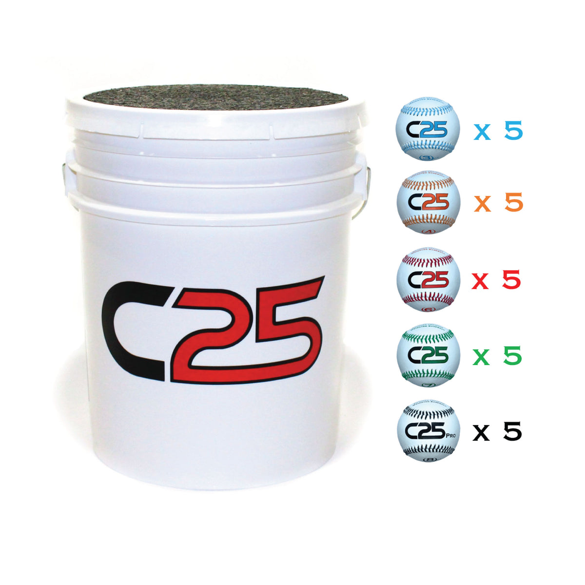 - 30 4oz C25 Catcher Training Weighted Baseballs with 5 Gallon Bucket & Cover