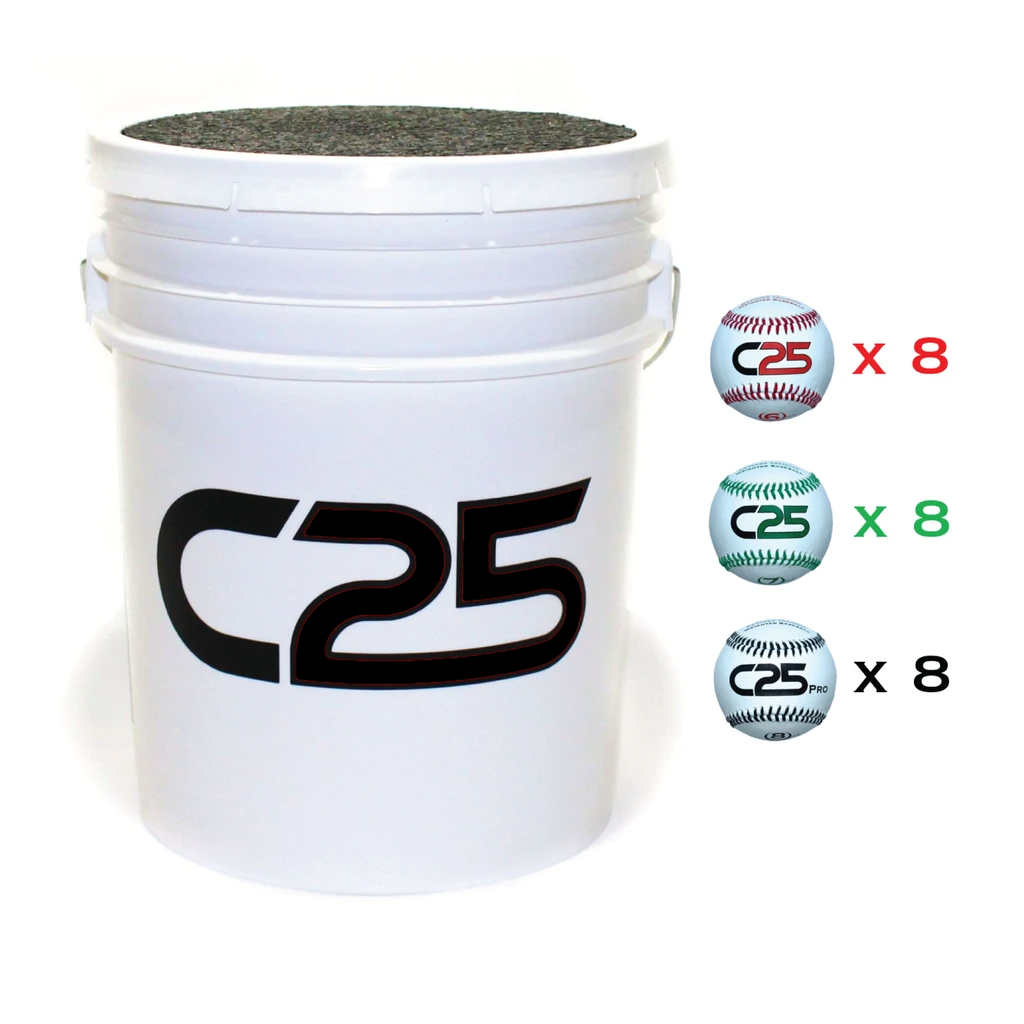 - 30 7oz C25 Catcher Training Weighted Baseballs with 5 Gallon Bucket & Cover