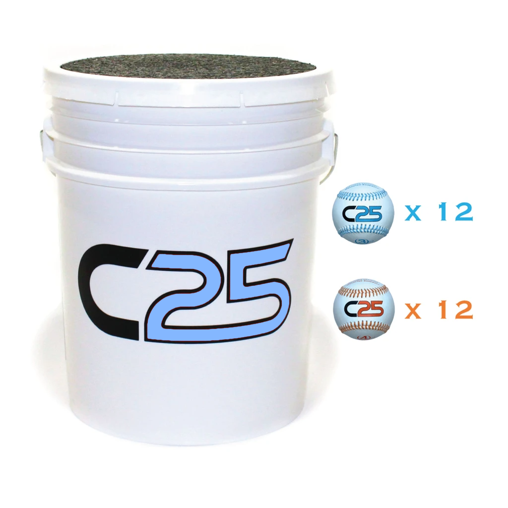 - 18 7oz C25 Catcher Training Weighted Baseballs with 5 Gallon Bucket & Cover